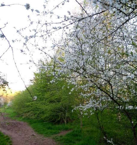 I go back a week later and find the blackthorn in glorious full bloom. I also find the coniferous woodland intact – you can see the remains of the fire (the scene complete with an empty beer can) but to my relief no damage to the trees. And as I leave this bit of woodland it feels like I’m emerging through the thick forest into Narnia!
